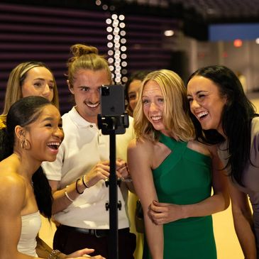Step onto the platform. You can go solo or stand back-to-back with up to 5 of your closes friends! Give the camera your best poses and "party" faces as it spins around you on a motorized lever.